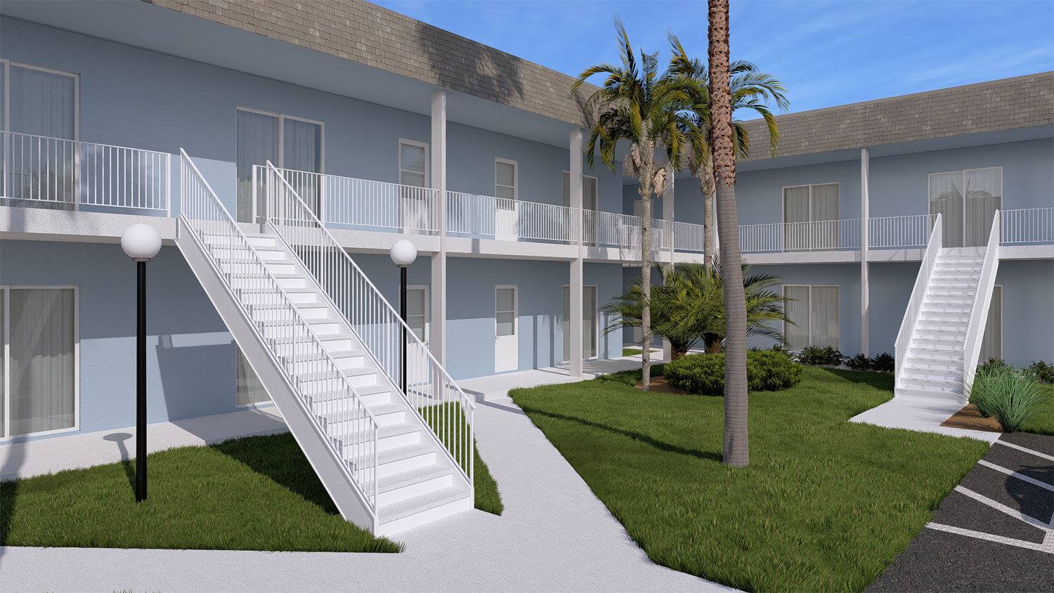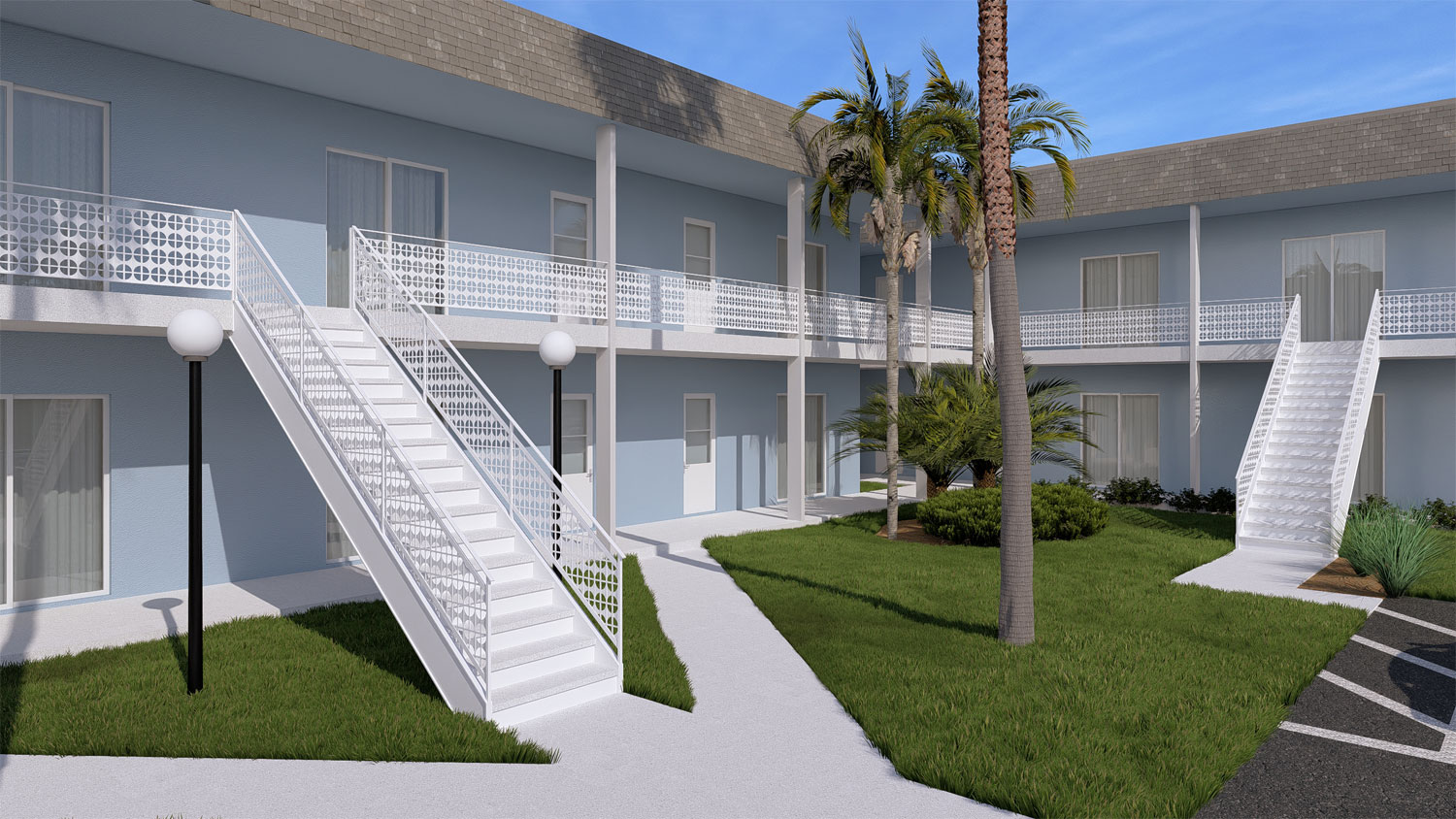The enclosed renderings represent a visual of what the two-story units will look like by reducing the number of stairwells from 5 to 3.